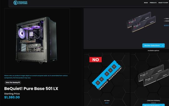 Paradox Customs Takes Bold Step by Offering Prebuilt PCs Without RAM